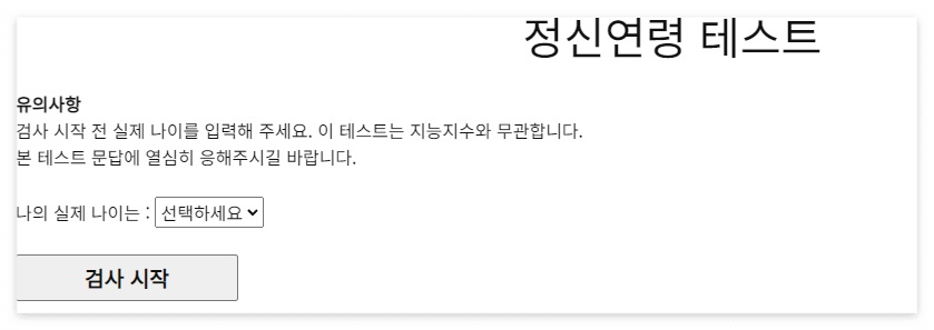 👉정신연령 테스트는 나의 나이에 비해 나의 정신연령이 몇 살인지 확인하는 테스트입니다.