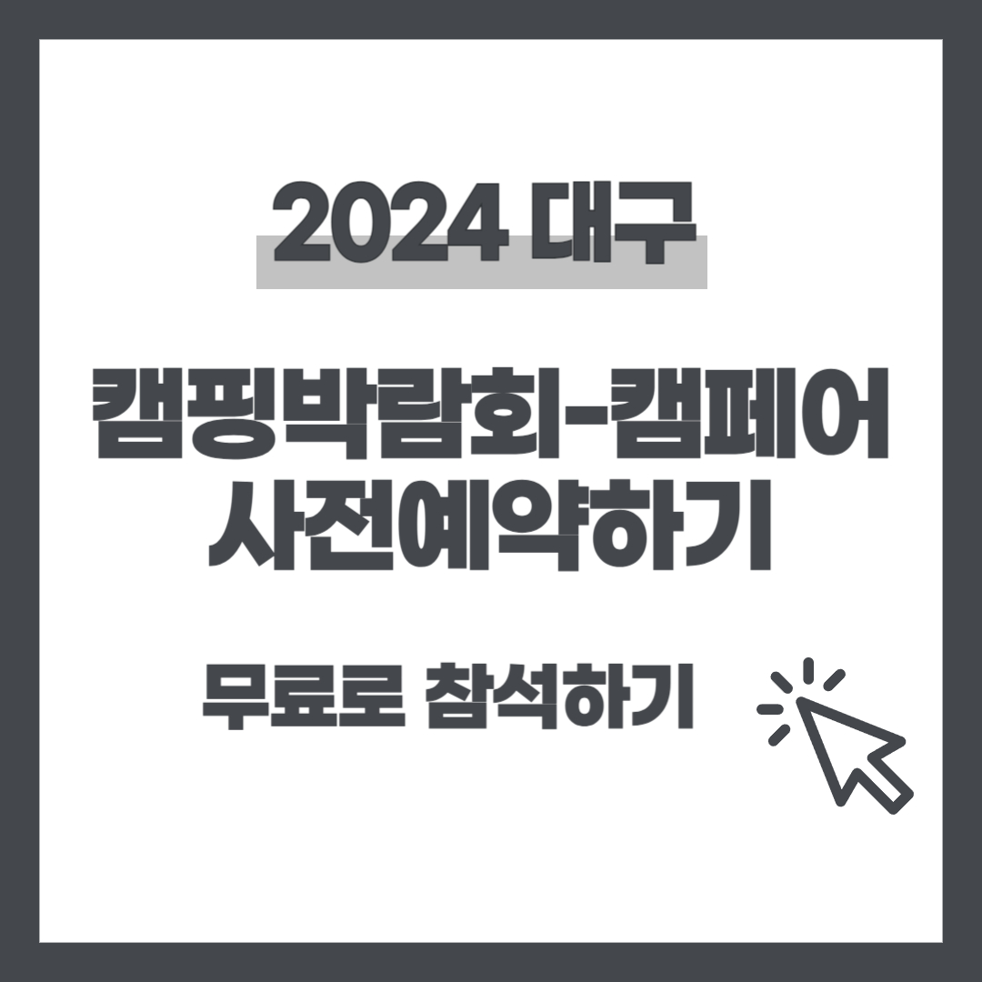 → 2024년 하반기 캠핑 박람회 일정은 대구에서 6.28~6.30까지, 부산은 8.2~8.4까지, 경남은 9.13~9.15까지 각 지역별 3일간 진행되는 일정입니다.